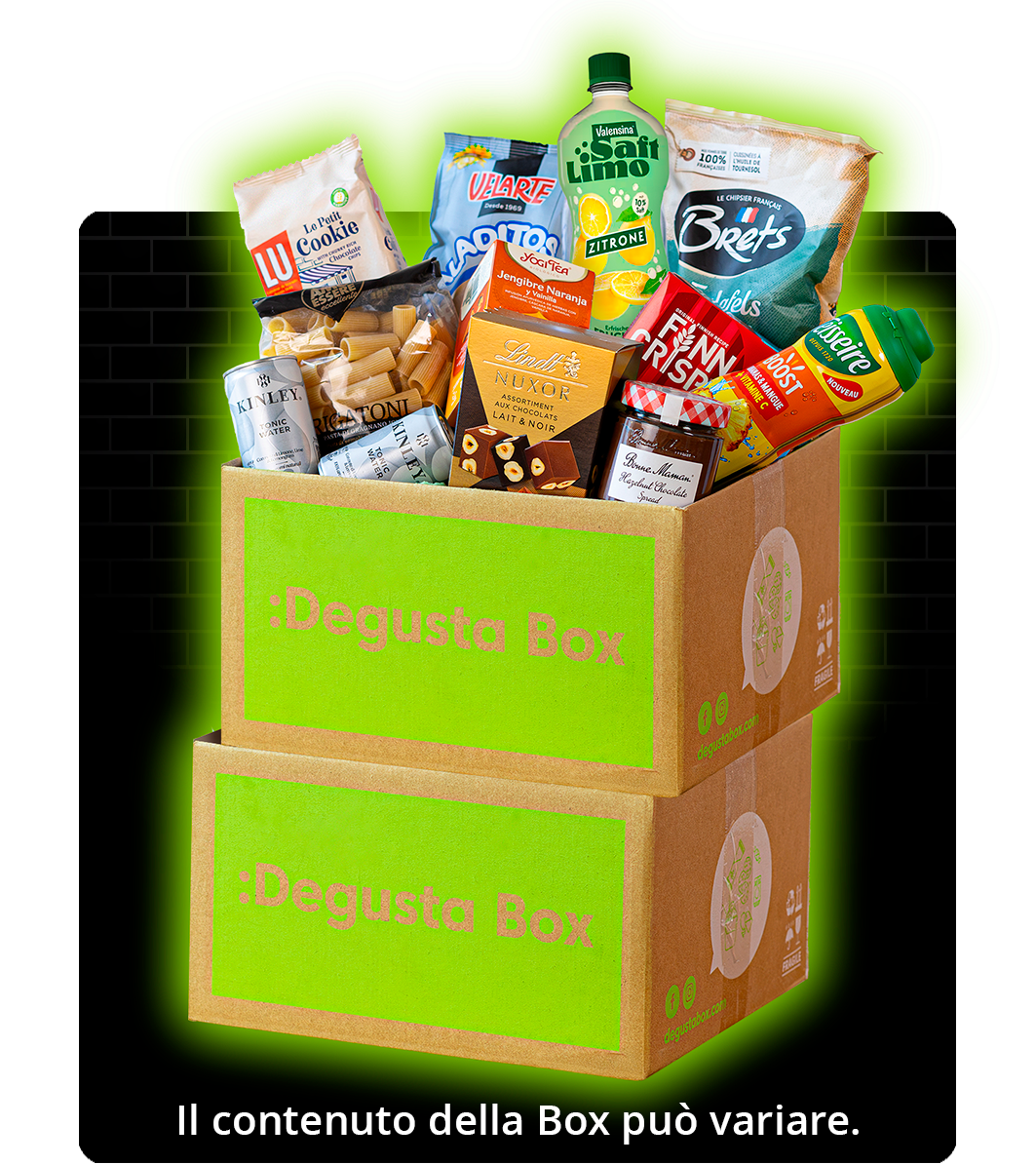 Degusta Box è un servizio in abbonamento mensile che ogni mese consegna una Box piena di prodotti alimentari sorprendenti. È pensata per aiutarti a scoprire articoli nuovi ed entusiasmanti, spesso includendo prodotti appena usciti sul mercato.