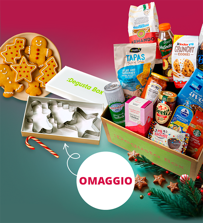 Ricevi la tua prima Degusta Box piena di sorprese deliziose e il set tagliabiscotti GRATIS.