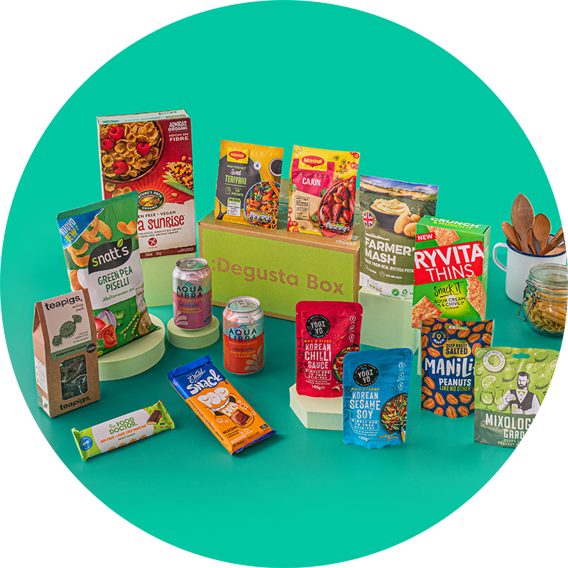 Degusta Box is a monthly subscription service that delivers a box filled with surprising food products every month. It's designed to help you discover new and exciting items, often including products that are just entering the market.